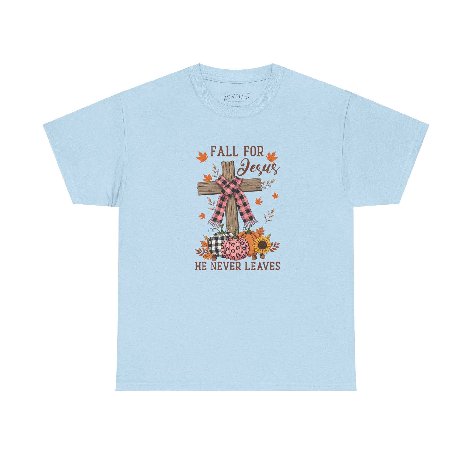 Fall for Jesus Heavy Cotton Tee, Christian T-Shirt, Faith Apparel, Autumn Tees, Inspirational Gift