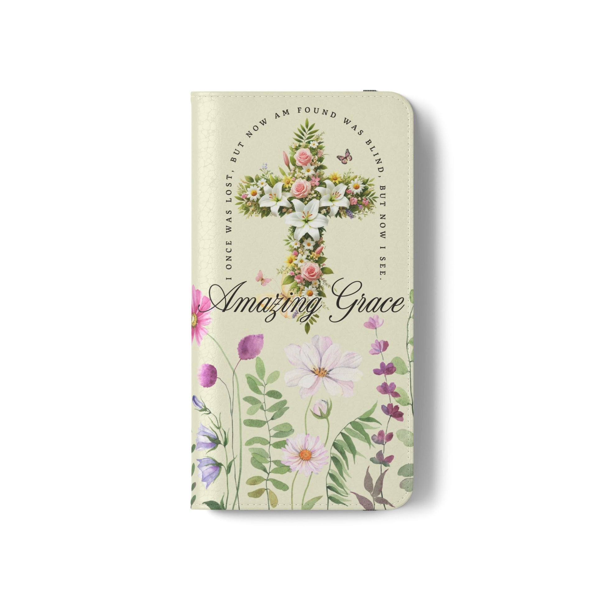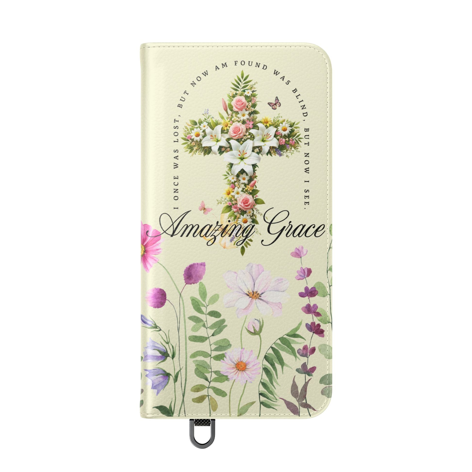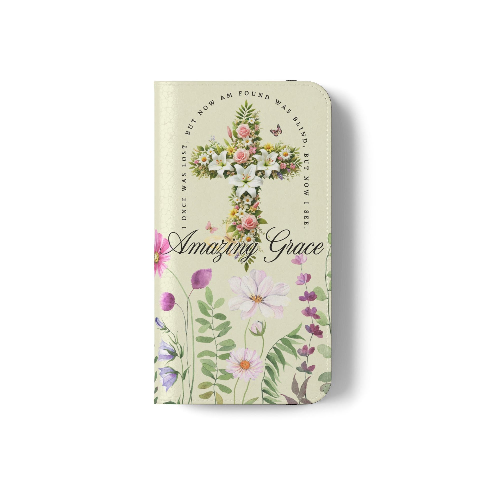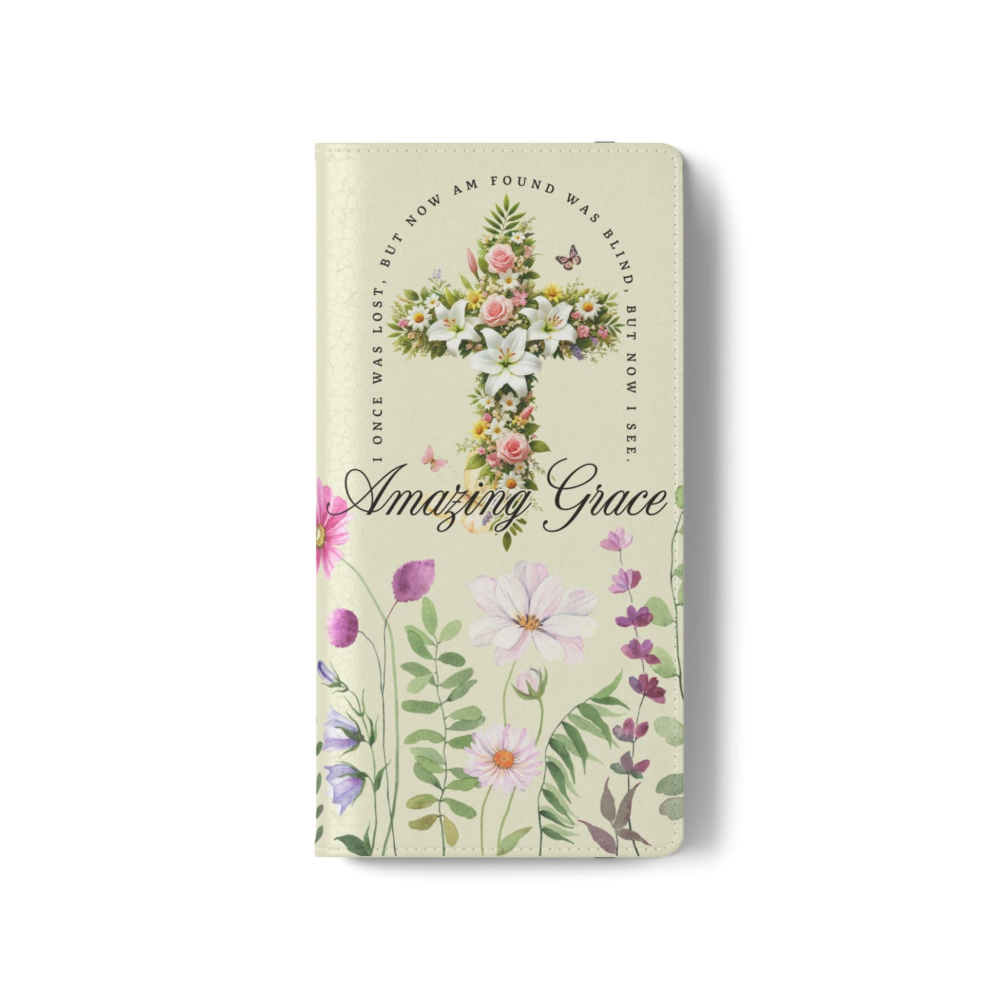 Floral Christian Prayer Flip Case, Amazing Grace, iPhone Samsung Wallet, Gifts for Her, Christian Phone Cover, Spring Floral Design