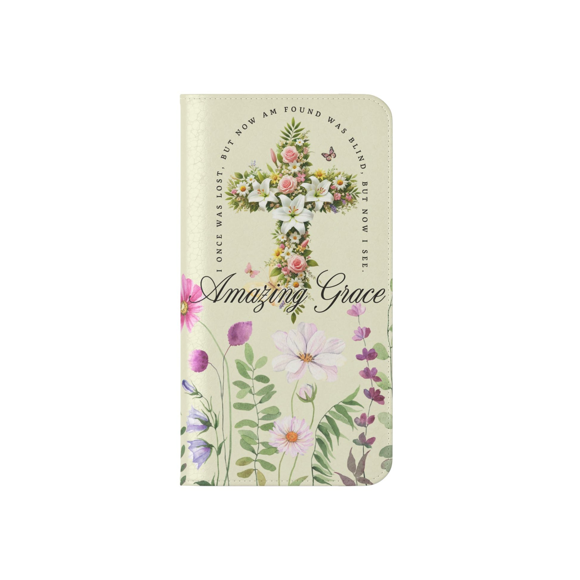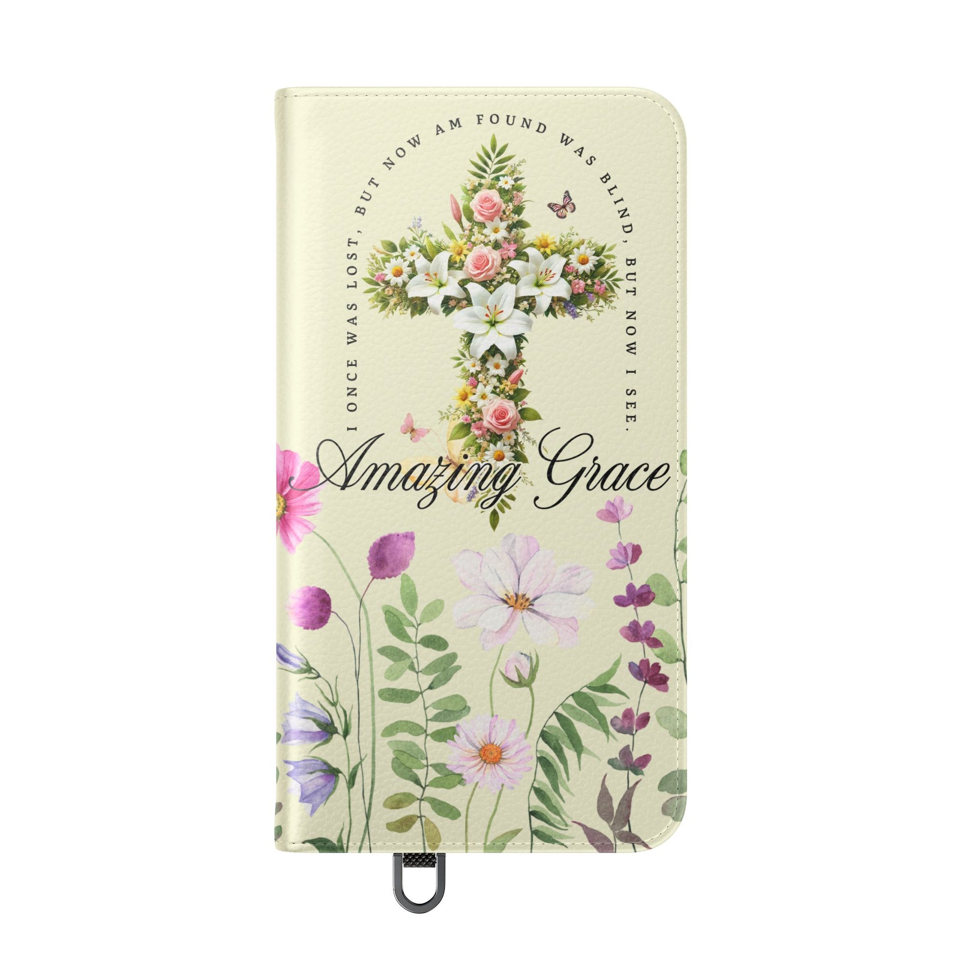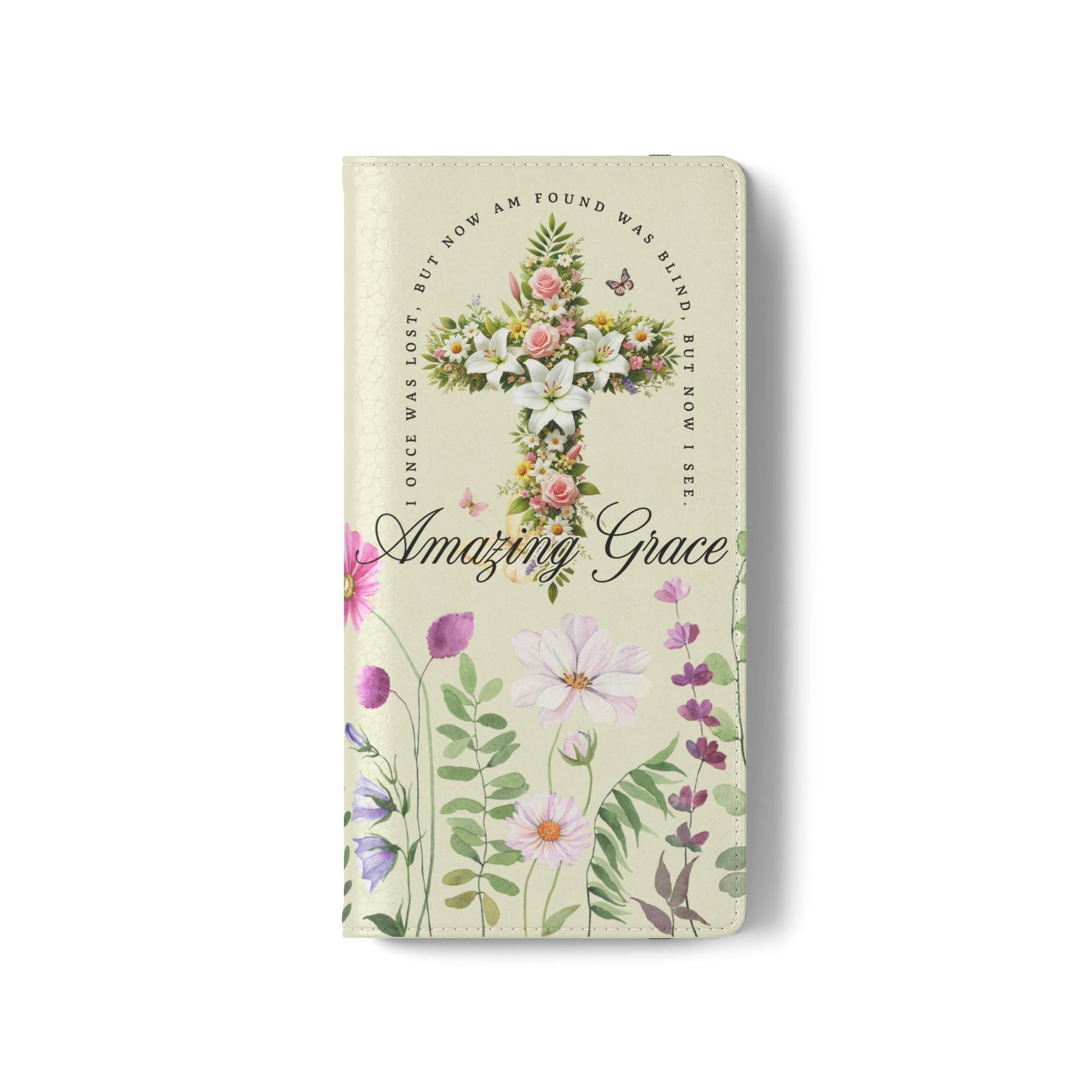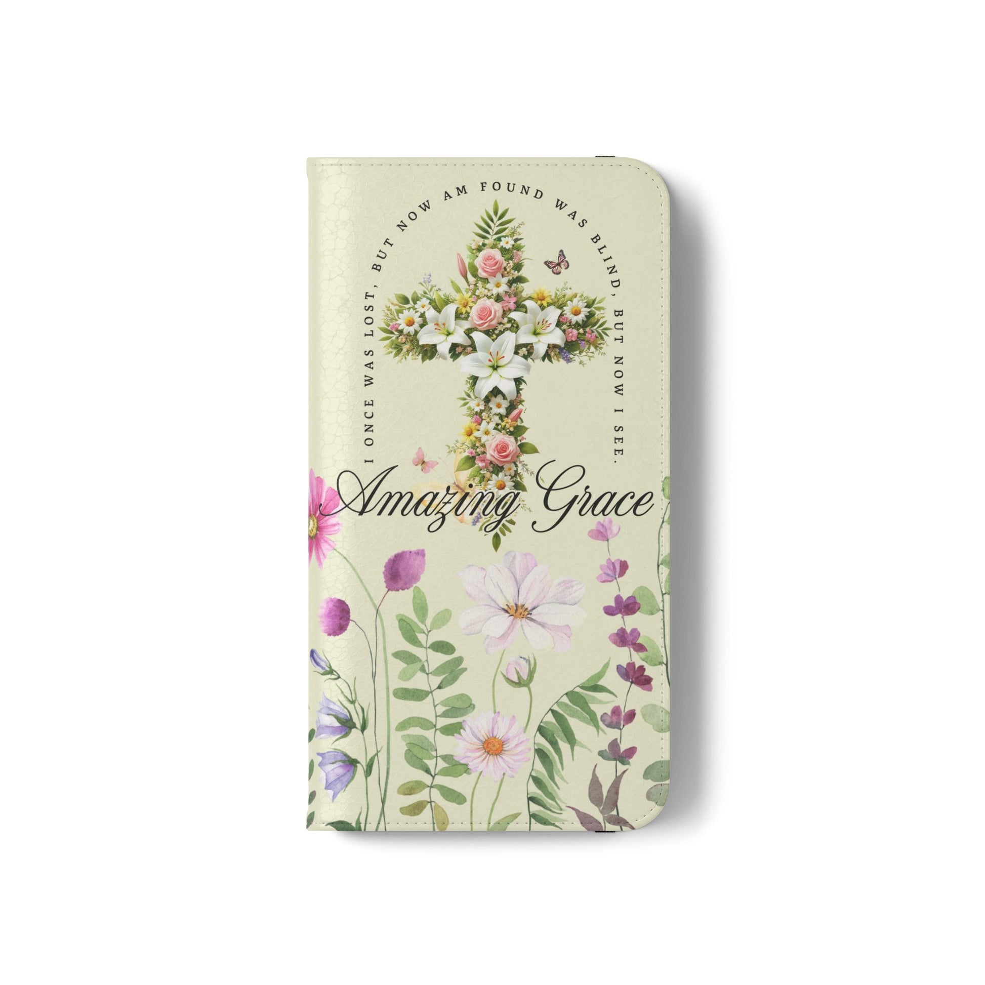 Floral Christian Prayer Flip Case, Amazing Grace, iPhone Samsung Wallet, Gifts for Her, Christian Phone Cover, Spring Floral Design