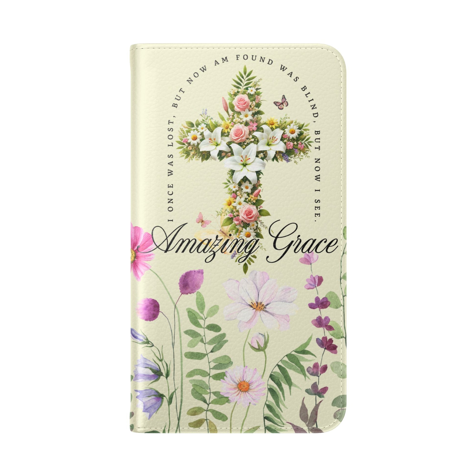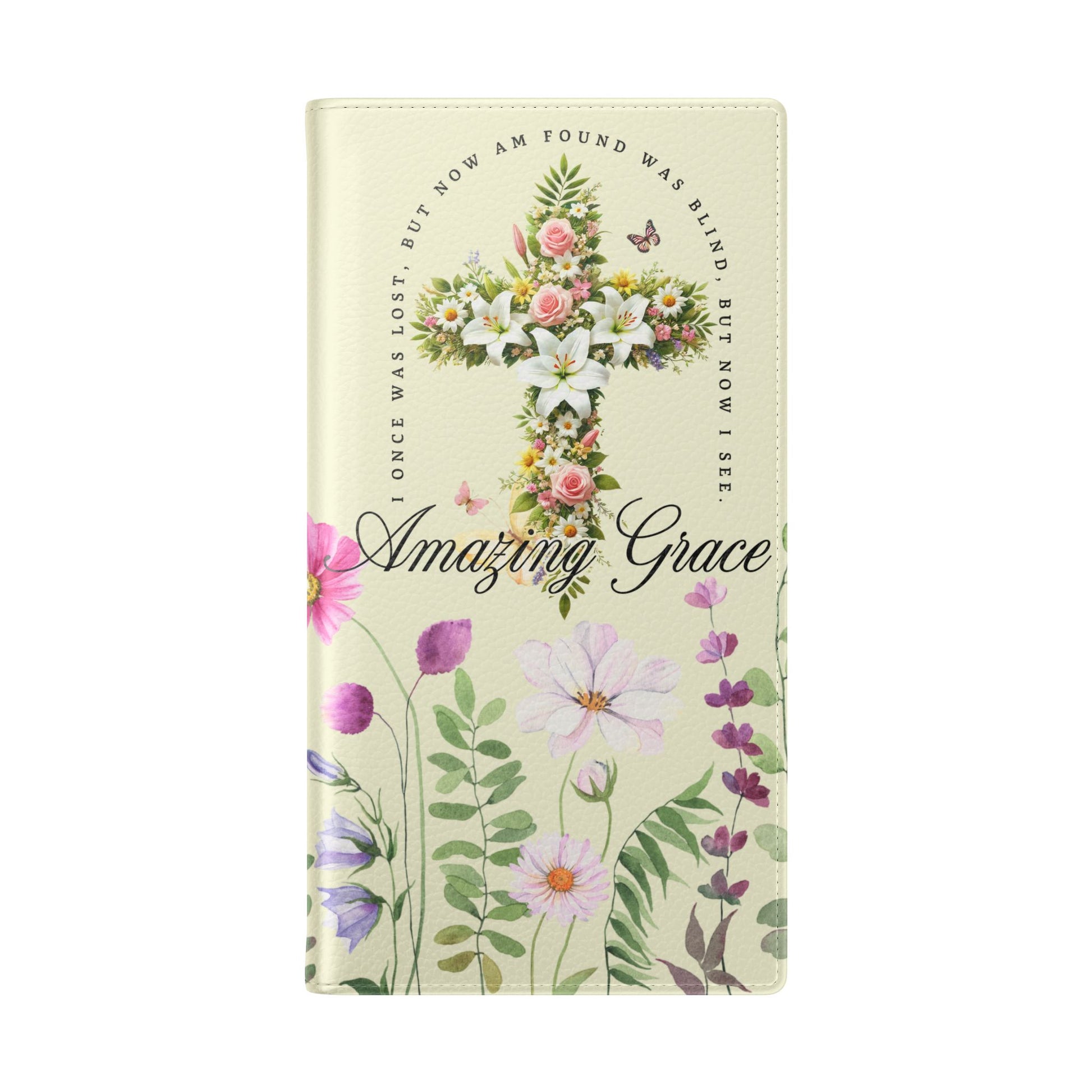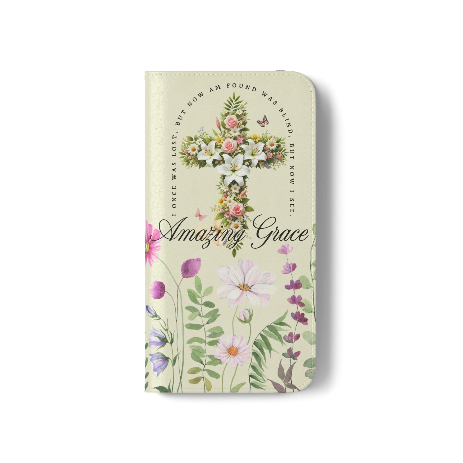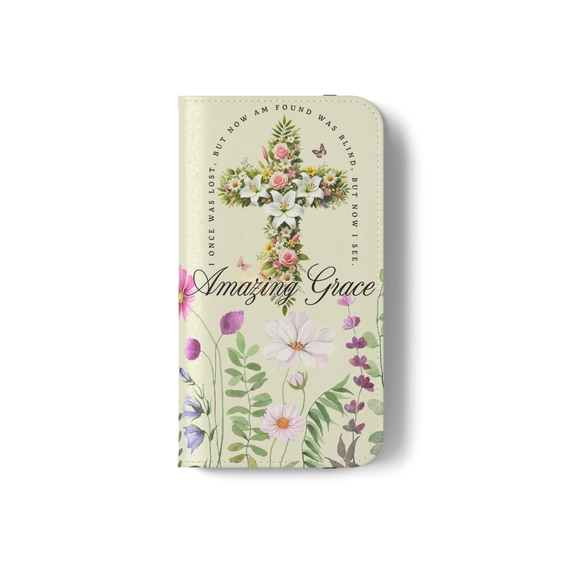 Floral Christian Prayer Flip Case, Amazing Grace, iPhone Samsung Wallet, Gifts for Her, Christian Phone Cover, Spring Floral Design