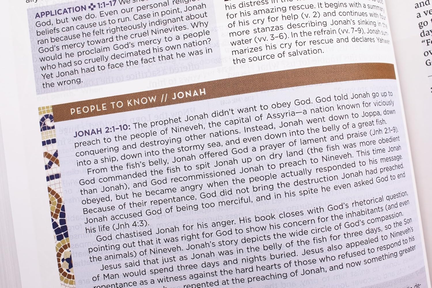 * Book Introductions provide perspective and application for every book of the Bible, plus timelines, reading guides, and more.